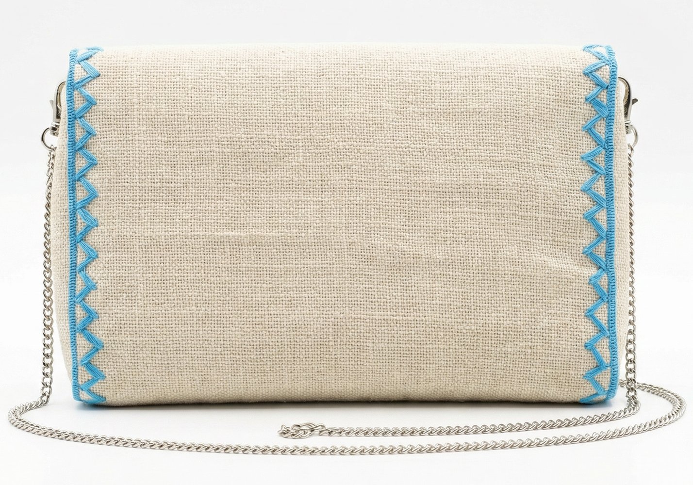 La superficie non è liscia: si percepisce la fibra, si vede la trama. È proprio questo che rende la borsa diversa da qualsiasi pochette “lucida” o costruita in modo industriale.