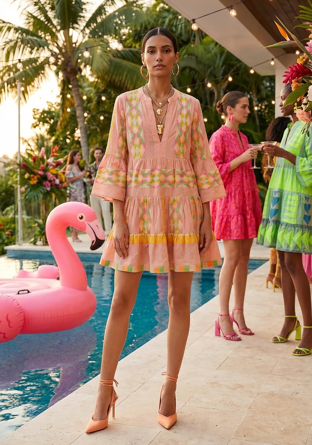 La lunghezza è mini e protagonista: per la città, una culotte o un pantaloncino slip invisibile sotto il tessuto ti permette libertà nei movimenti mantenendo la linea pulita.