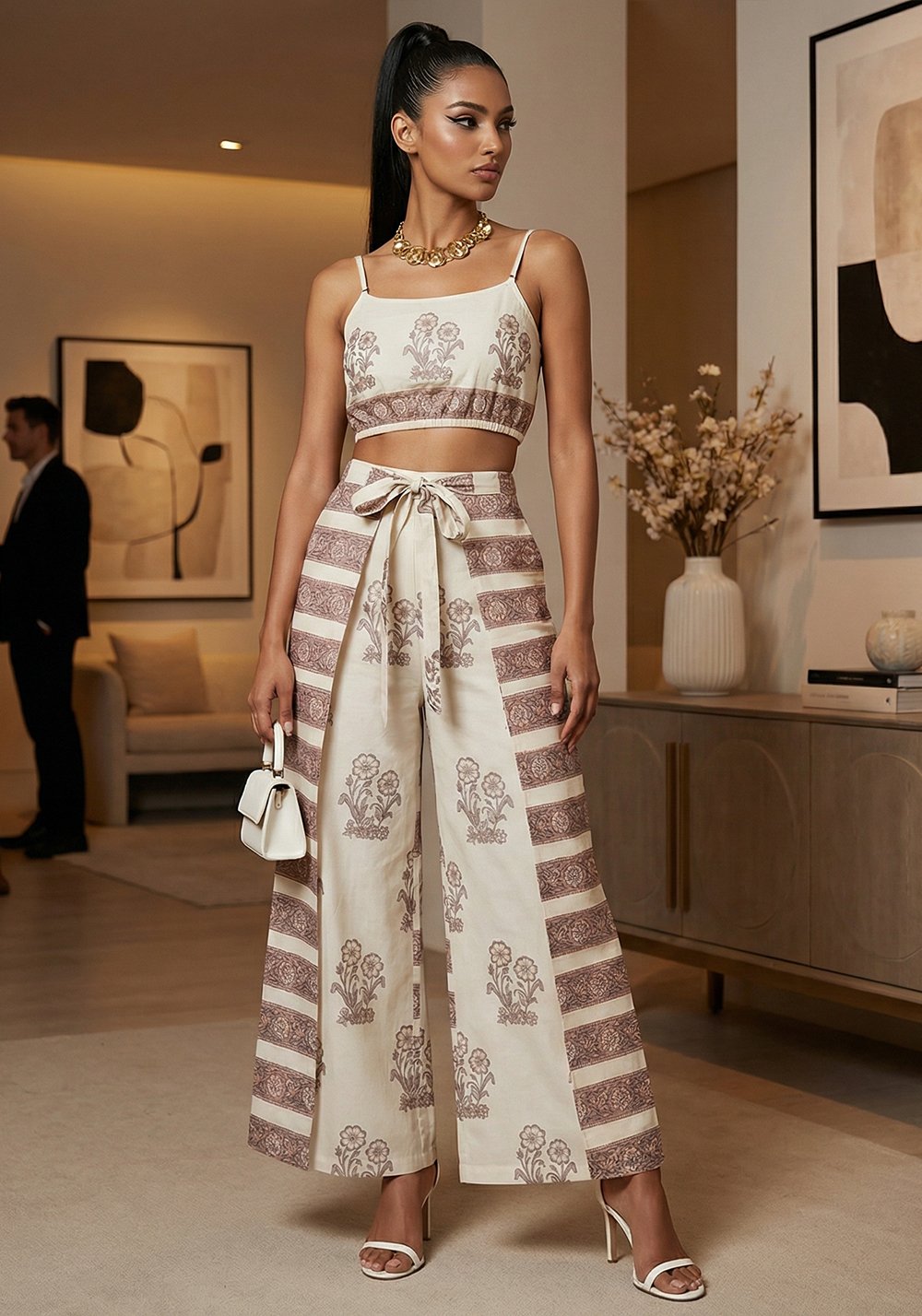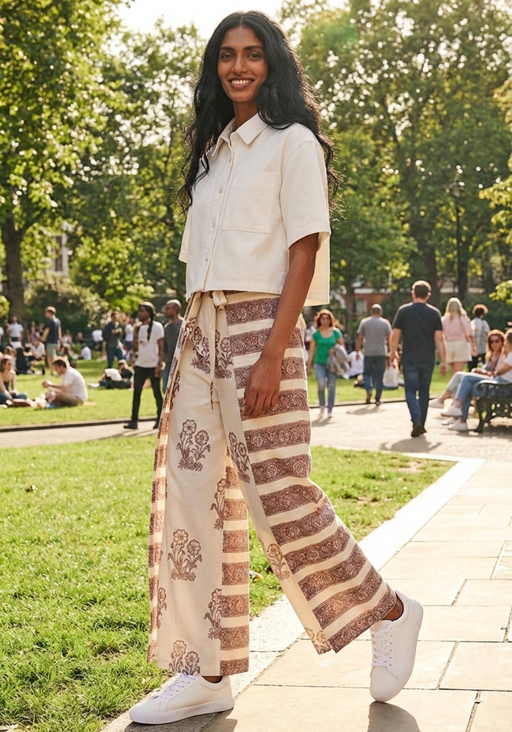 Abbinalo a una tonalità di verde salvia: il contrasto con il lilla accende la stampa e rende il look immediatamente più cool, più ricercato, senza sforzo.