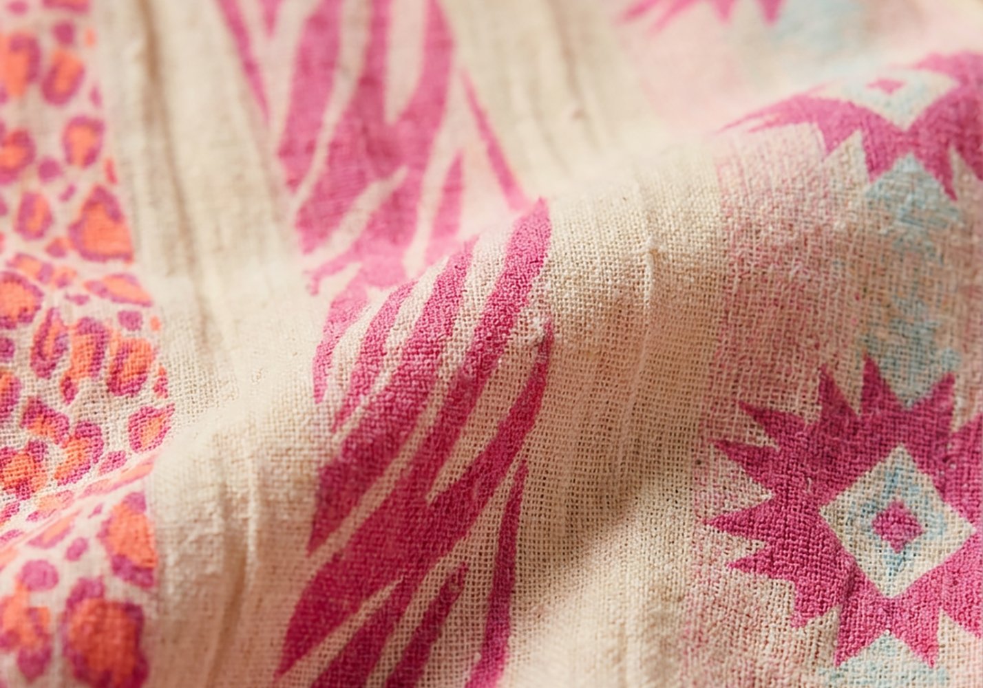 Un jacquard fluo intrecciato che cattura la luce in modo intenso ma sofisticato. Il motivo non è stampato: vive dentro la trama del tessuto, creando profondità e rilievo. Il colore è pieno, vibrante, ma mai piatto grazie alla lavorazione strutturata.